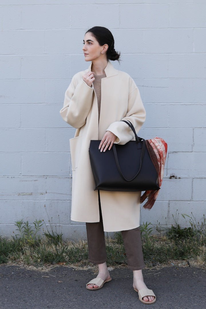 Inspired by the utility of a bowler handbag and the personality of a classic French handbag. meet the Arden. This large. spacious companion is crafted in exquisite vegan leather handstitched in Italy by our expert designer. craftsman. and lifelong friend.